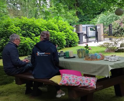 U bent van harte welkom voor een kopje koffie en een luisterend oor. U vindt onze vrijwilligers direct rechts na de ingang aan de picknicktafel en bij slecht weer verhuizen ze naar binnen.